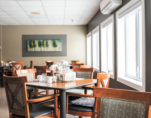 Les personnes qui résident dans les chambres pour une personne et les suites ont accès aux services de repas et de collation, en plus de l’entretien ménager quotidien. Ces services sont également disponibles sur demande aux résidentes et résidents des autres types de logements, tout comme un espace de stationnement et l’air conditionné. Tous les hébergements comprennent l’internet, la télévision, le téléphone, le chauffage et l’éclairage.