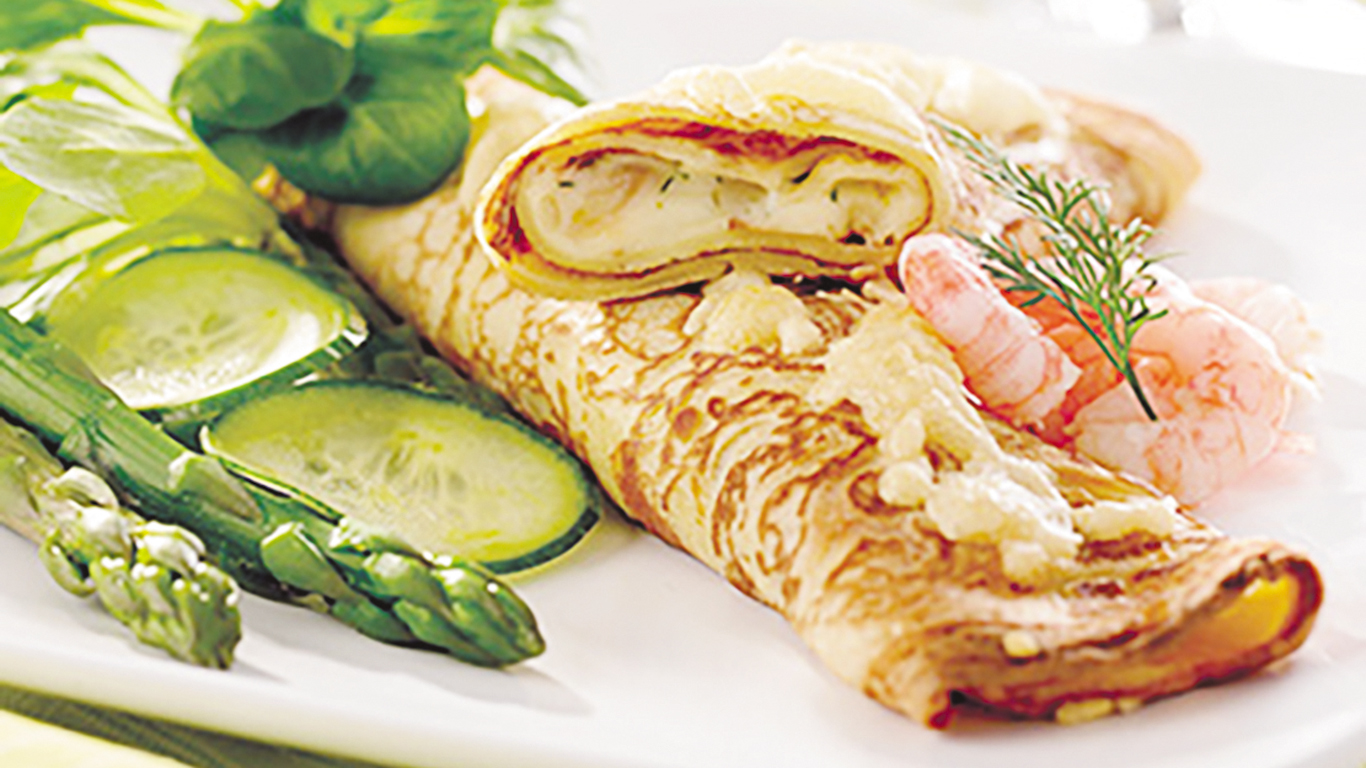• Plier les deux extrémités de la crêpe sur son centre et la rouler sur elle-même pour former un rouleau de 5 cm (2 po) de diamètre.