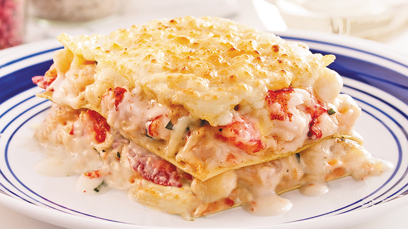 - Couvrir de 3 lasagnes et de couches de la moitié des crevettes, du crabe et du mélange d’épinards; recouvrir de 2/3 t. du reste de la sauce.