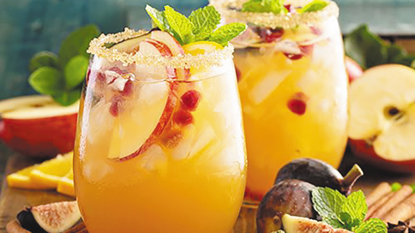 Placer les bâtons de cannelle, les fruits, le vin, le cidre, le brandy et les jus d’orange et de citron dans un grand pichet. Bien mélanger. Réfrigérer au moins trois heures, idéalement jusqu’au jour suivant. Pour servir, verser le mélange dans des verres et compléter de soda nature. Garnir d’un bâton de cannelle.