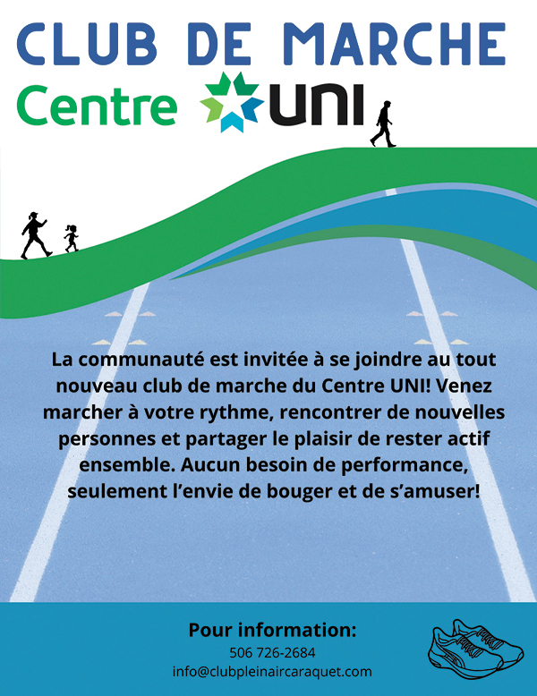 Nous vous invitons à venir en grand nombre profiter de nos magnifiques installations au Centre UNI. Nous vous encourageons également à devenir membre dès maintenant. Ça comporte de nombreux avantages tels que l’accès à des activités variées, le renforcement des liens sociaux, l’engagement communautaire, le développement personnel et la santé et les occasions de bénévolat.