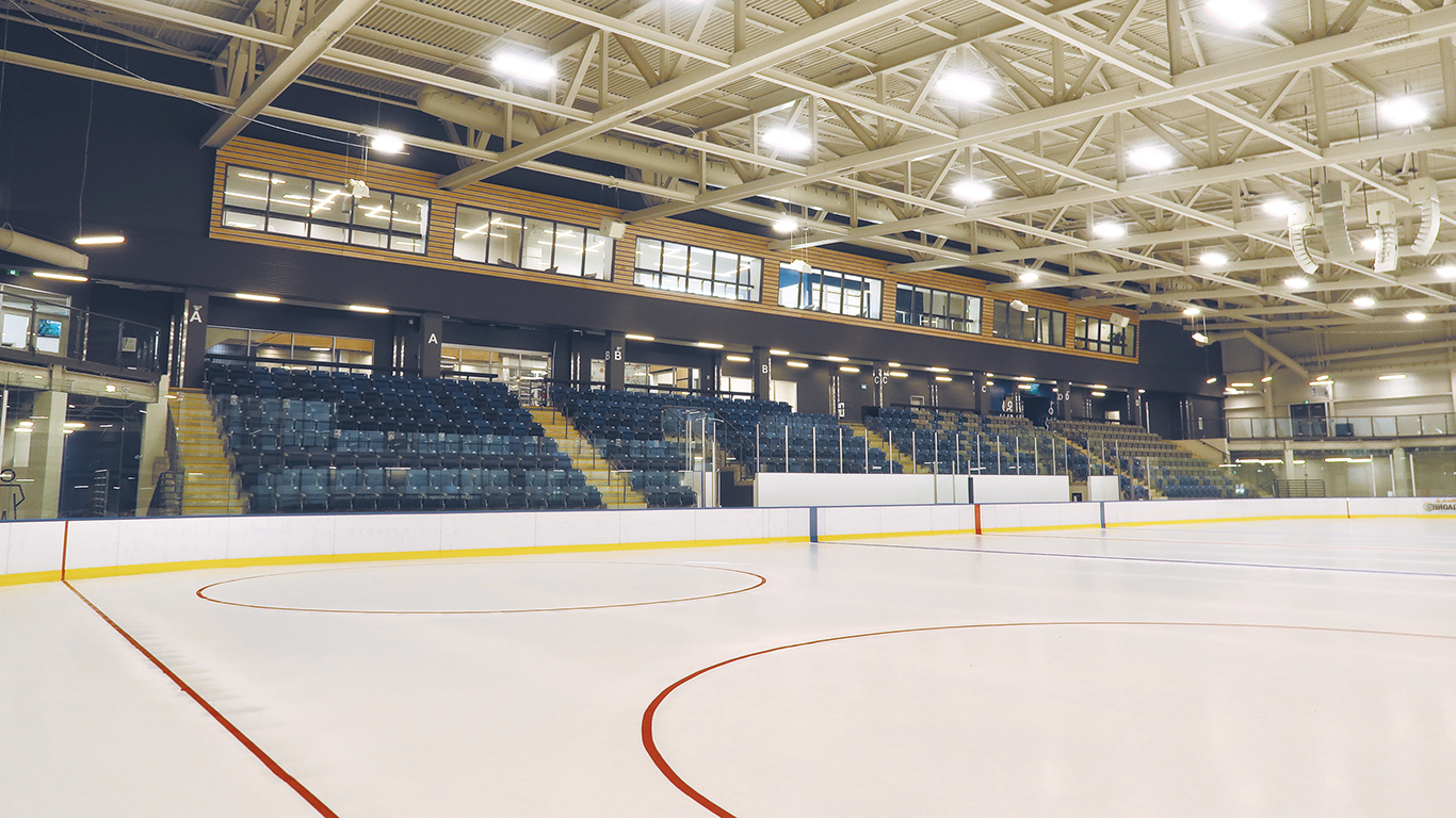 On y retrouve tout d’abord une surface de glace de dimension règlementaire de la LNH qui sera utilisée pour le hockey, le patinage de vitesse, artistique et familial, en plus d’activités diverses durant la saison estivale. La glace est entourée de gradins avec 600 sièges et les installations comprennent huit vestiaires, une salle pour les arbitres et un espace de mise en forme pour les équipes locales.