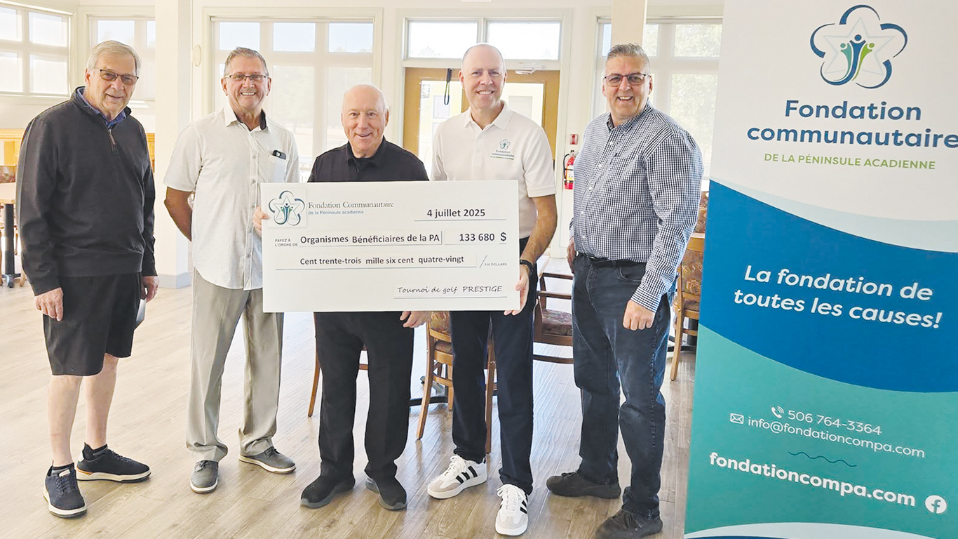 Le 8 août dernier, la Fondation communautaire de la Péninsule acadienne (FCPA) a rassemblé 150 golfeuses et golfeurs engagés, accompagnés de partenaires, bénévoles et membres de la communauté, pour une journée exceptionnelle de solidarité et de plaisir sur les parcours. Grâce à votre générosité, un montant impressionnant de 132 680 $ a été recueilli dans le cadre de ce tournoi!