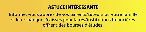 • La bourse est applicable directement sur les droits de scolarité en deux versements égaux (septembre et janvier) ;