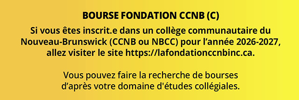 L’ACSNB attribuera quatre bourses d’un montant de 1000 $ chacune à quatre étudiant.e.s qui sont inscrit.e.s dans un établissement d’enseignement postsecondaire en français.