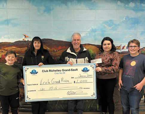 L’équipe de l’École Grande-Rivière tient à remercier chaleureusement le Club Richelieu Grand-Sault pour son généreux don de 1 000 $, offert une fois de plus cette année. Depuis plusieurs années, le club soutient les écoles de la région en effectuant des dons annuels afin de contribuer aux besoins de ces dernières. Merci sincèrement pour votre grande générosité et pour l’attention que vous portez au bien-être de nos élèves !