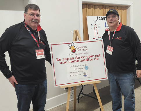 Notre mouvement est fier d’avoir contribué à un souper des bénévoles pour la campagne 2025 d’Opération Nez rouge. Sur la photo : R/Guy et R/Bernard.