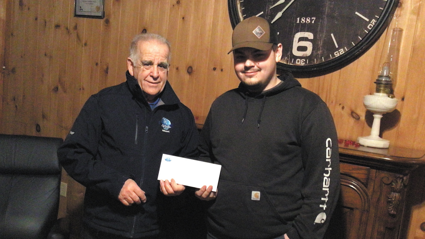 Nathan Rousselle reçoit le chèque de R/Guy Vautour.