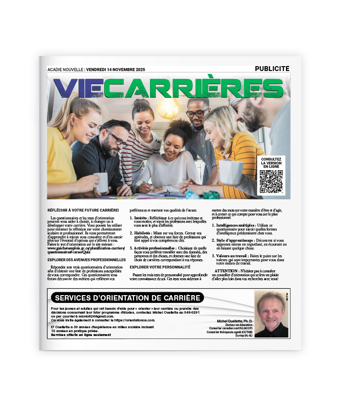 Mise au point : Ce cahier est publié par le service de publicité de l’Acadie Nouvelle. Le contenu des textes ne relève aucunement de la salle de rédaction du journal.