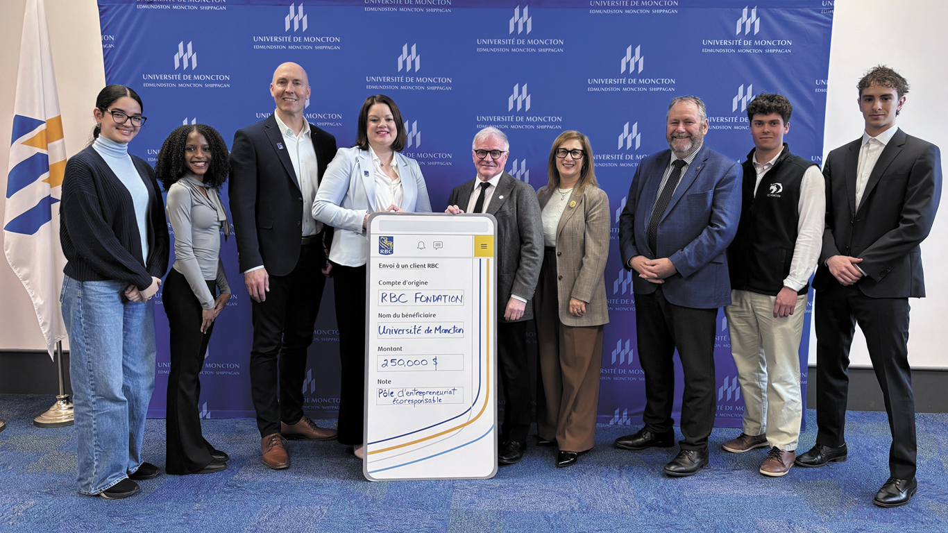 Grâce à un don exceptionnel de 250 000 $ de RBC Fondation, l’Université de Moncton franchit une nouvelle étape dans son engagement envers l’innovation et le développement durable. Ce soutien majeur permet le lancement officiel du Pôle d’entrepreneuriat écoresponsable, une initiative qui vise à former la prochaine génération d’entrepreneures et d’entrepreneurs francophones tout en accompagnant les PME du Nouveau-Brunswick dans l’adoption de pratiques plus durables et responsables.