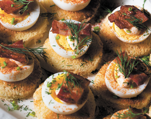 Canapés aux œufs et au bacon