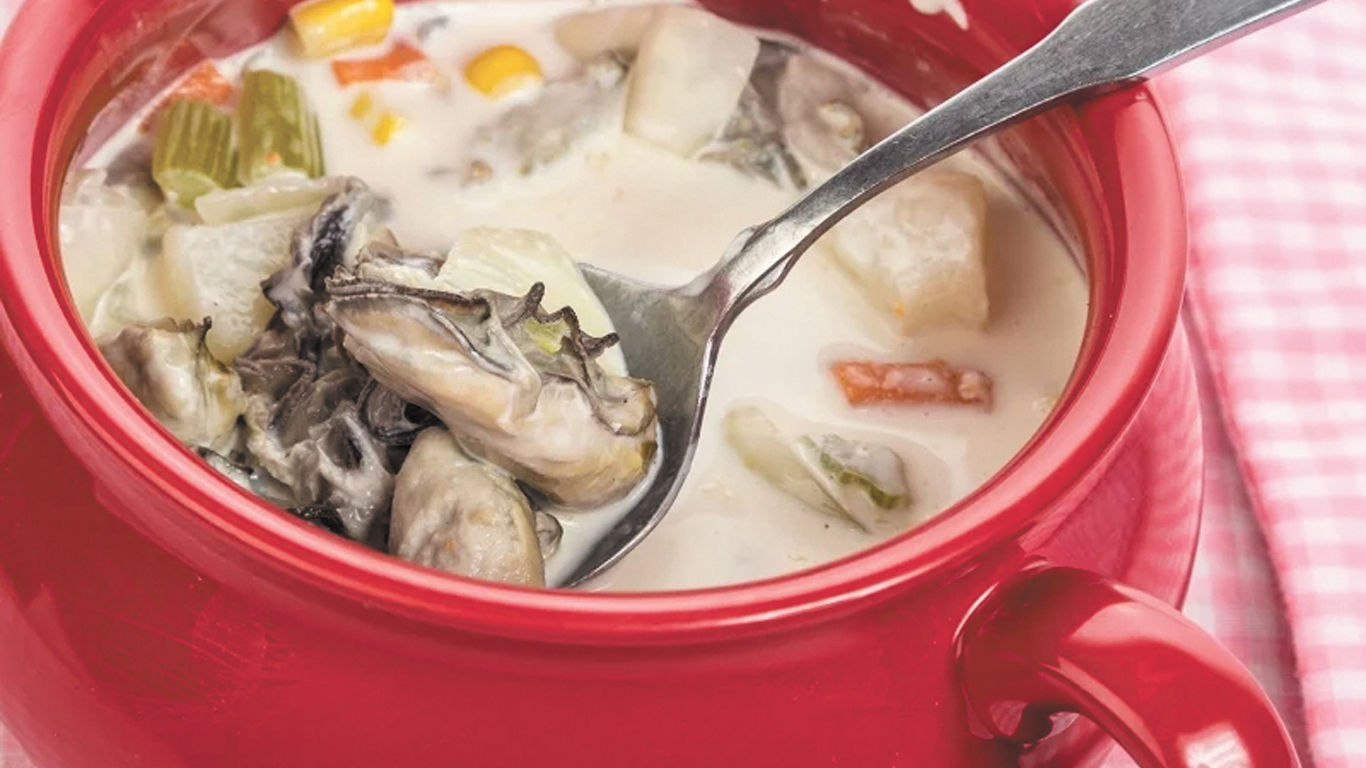 Dans un poêlon de taille moyenne, faites suer le céleri, les oignons et les graines de fenouil jusqu’à ce que les oignons soient translucides. Ajoutez le bouillon de poulet (on peut utiliser aussi du bouillon de poisson) et les pommes de terre. Laissez cuire jusqu’à ce que les pommes de terre soient tendres. Ajoutez la crème et laissez cuire lentement pendant 2 à 3 minutes. Incorporez soigneusement les huîtres retirées de leur coquille, ainsi que leur eau que vous aurez réservée. Assaisonnez et servez. Pour 1 personne.