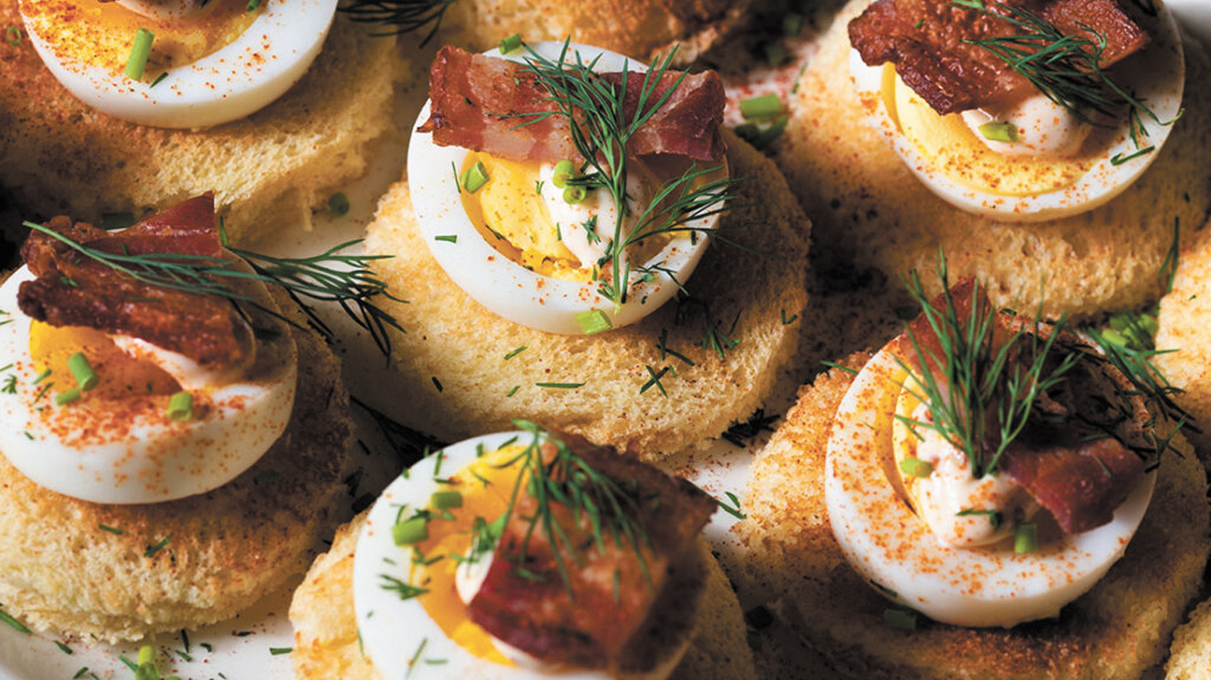 Canapés aux œufs et au bacon